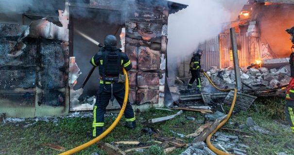 На місці подій працюють підрозділи ДСНС та піротехнічні розрахунки. Триває ліквідація пожеж.