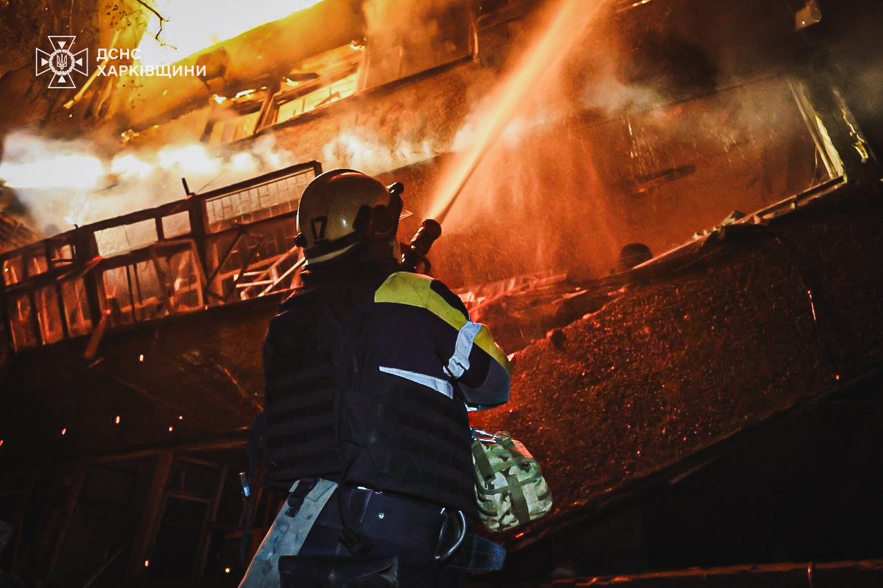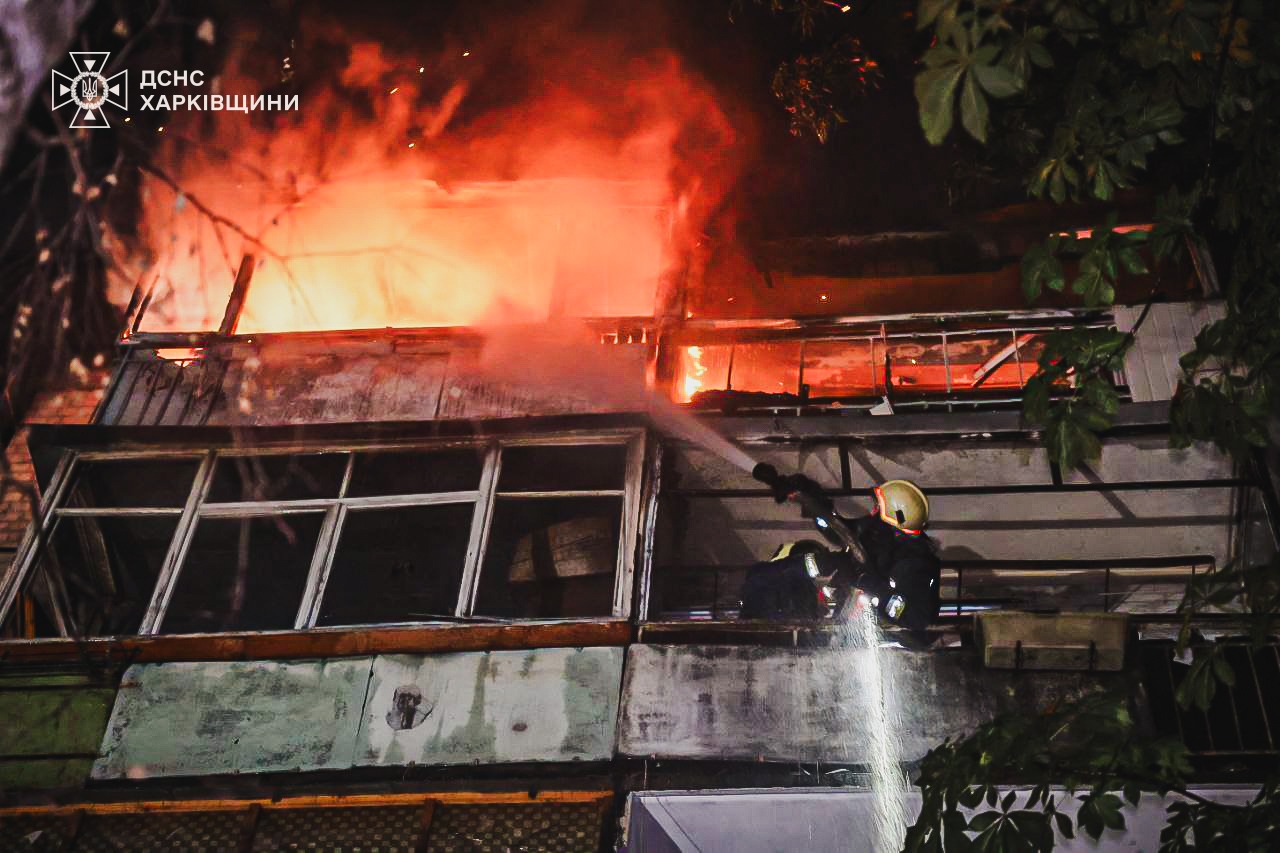 Окупанти били дронами по багатоповерховим житловим будинкам, приватному сектору, цивільному підприємству та іншим будівлям у Слобідському та Основ'янському районах міста. За різними адресами виникли пожежі. На місцях влучань працюють екстрені служби.