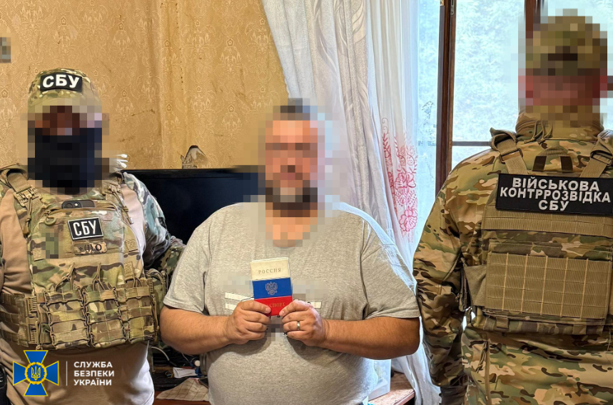 Під час обшуків у помешканні та автомобілі зловмисника вилучено компоненти для виготовлення СВП, прокремлівську символіку, планшет, телефон з доказами зв’язку з ФСБ, а також український паспорт в обкладинці з триколором.