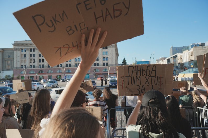 Жителі Харкова третій день протестують проти закону № 12414, який обмежує повноваження НАБУ і САП. Акція розпочалась біля майдану Свободи у центрі міста. В акції протесту беруть участь декілька сотень людей.