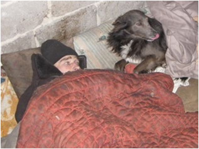 Він любить зиму, бо влітку важко переносити спеку і доглядати за ранами. Його секрет виживання – собаки: "Вони зігрівають, а люди через них часто допомагають з їжею. Коли холодно, дві собаки і ковдра – і не замерзнеш".