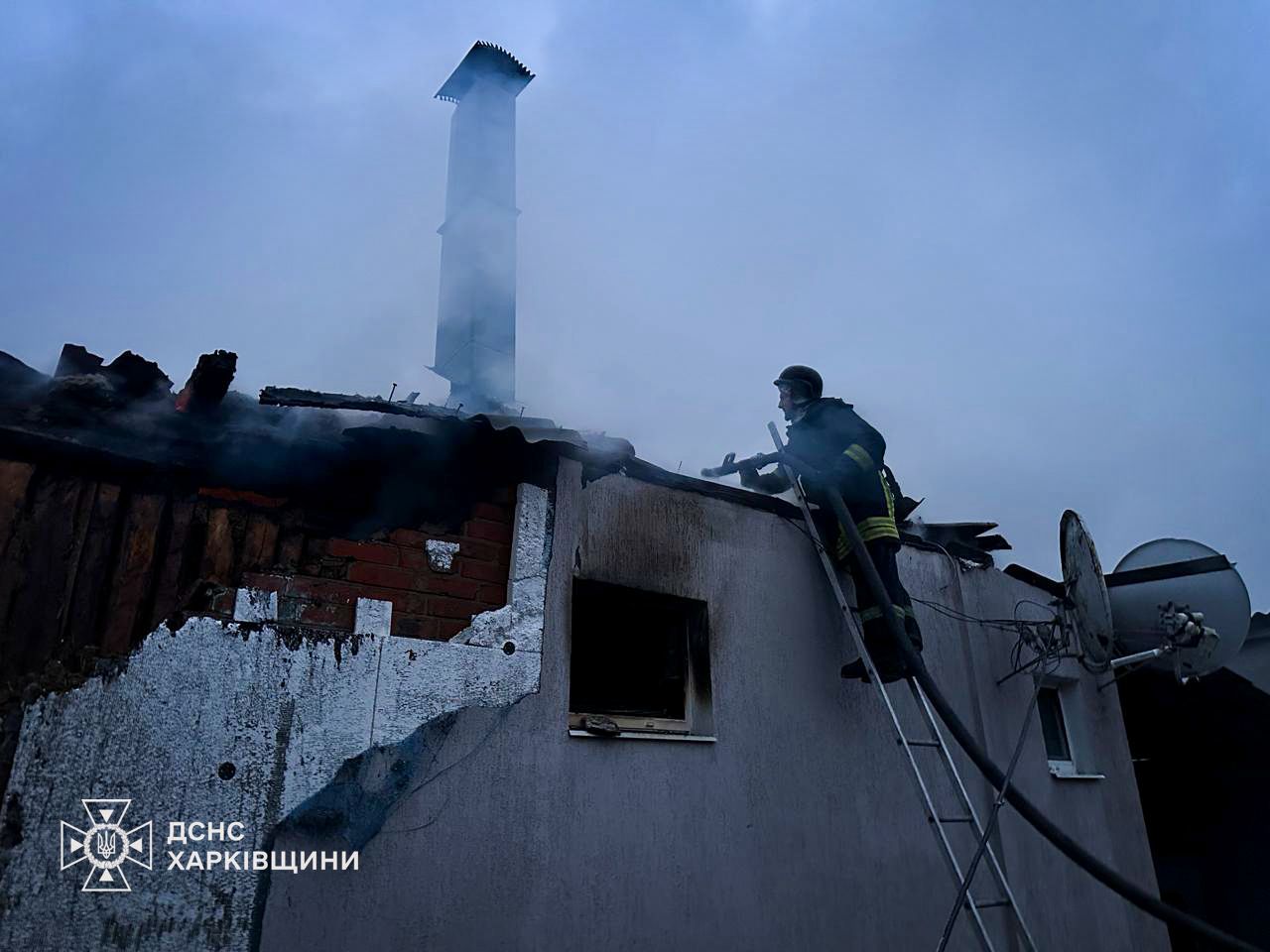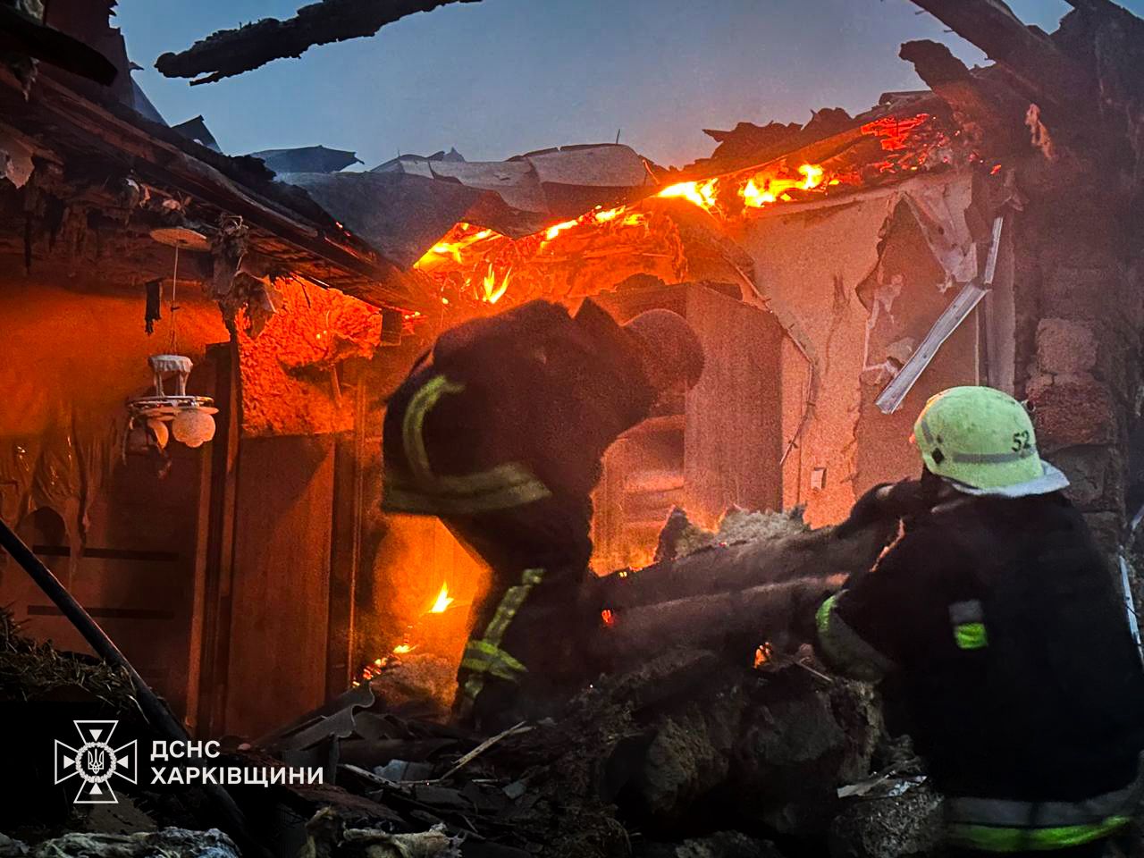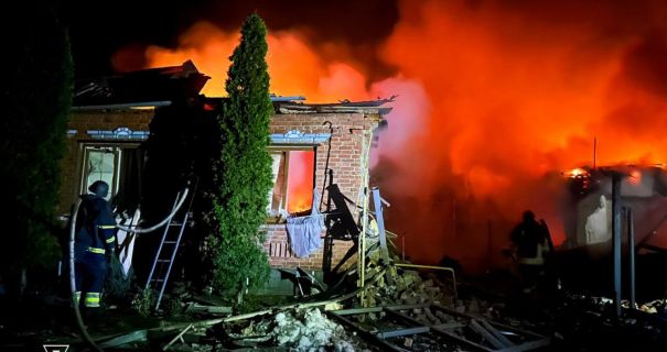 Внаслідок влучання виникла пожежа – горіли конструктивні елементи двох зруйнованих приватних будинків на площі 180 кв. м.