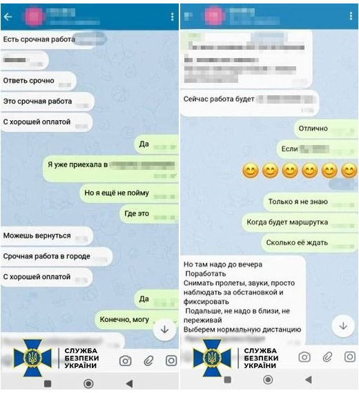 За даними СБУ, за інструкціями куратора з РФ агентка одразу після нічної атаки прифронтового міста відправилась фіксувати наслідки обстрілів. Того ж дня вона отримала наступне завдання: зняти на відео польоти російських дронів під час ударів по Харкову у світлий час доби.
