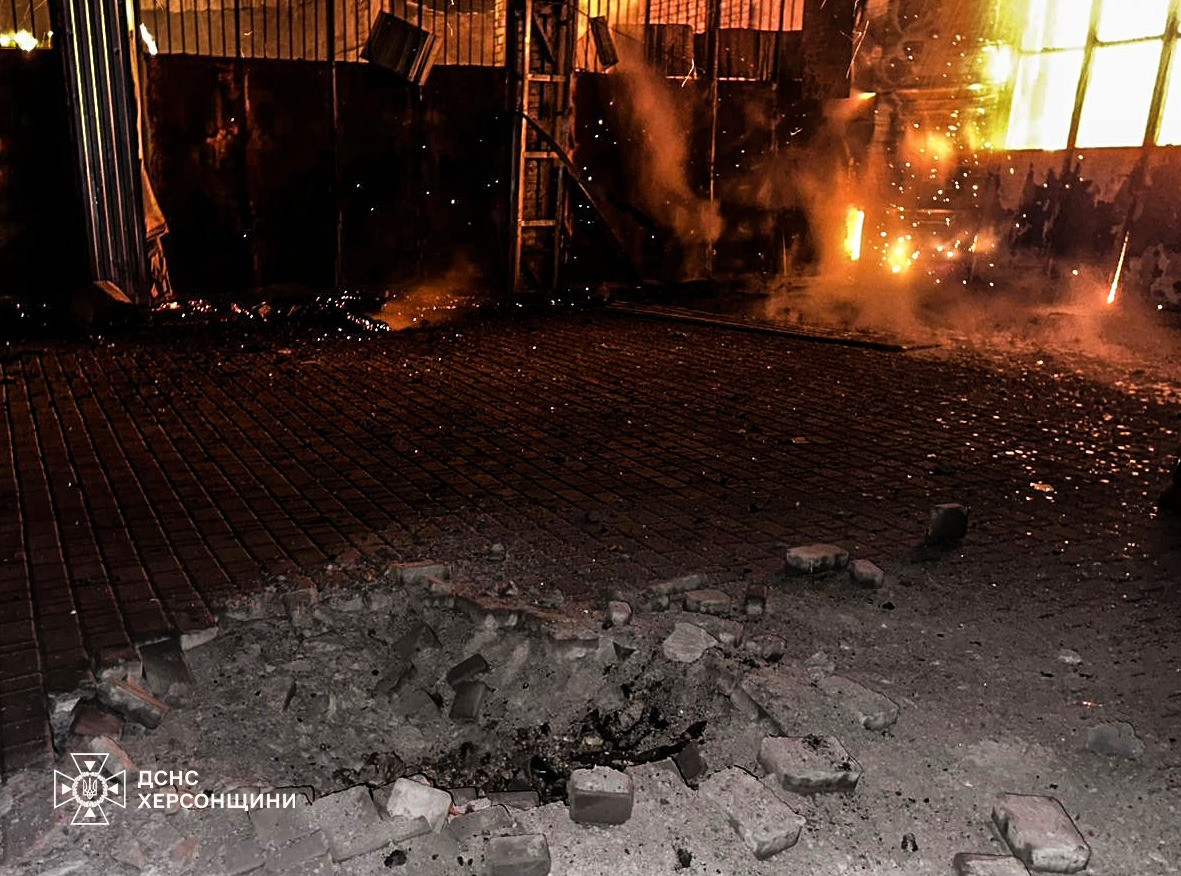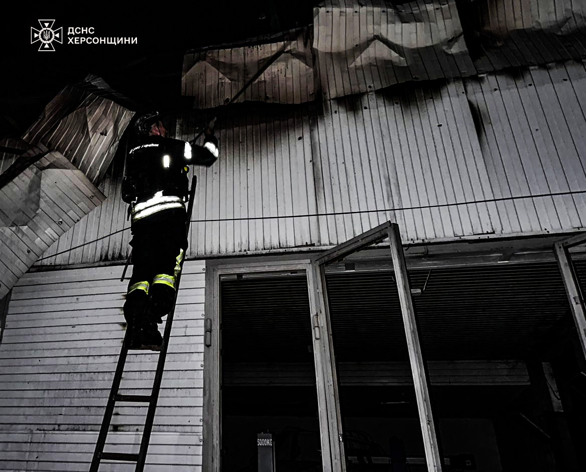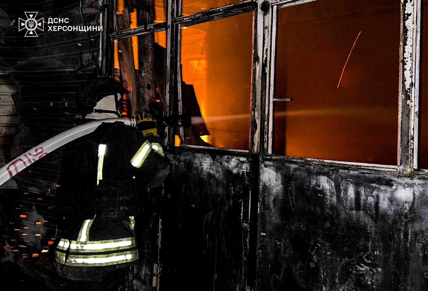 У Херсоні рятувальники ліквідовували масштабну пожежу в нежитловій будівлі площею близько 800 кв. м, що виникла внаслідок чергового російського обстрілу. Під час гасіння вогню ворог завдав повторного удару по місцю події