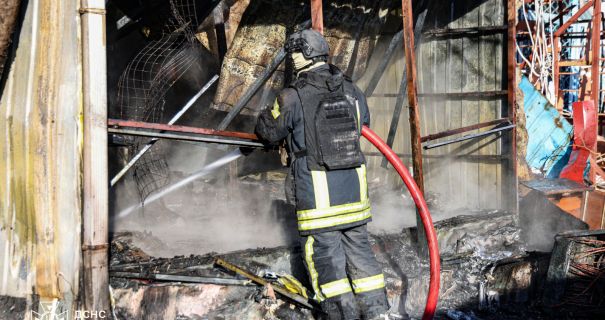 Рятувальники повідомили, що внаслідок удару на міському ринку Херсона загорілись торгівельні кіоски. Рятувальники ліквідували пожежі попри ризик повторних атак росіян.