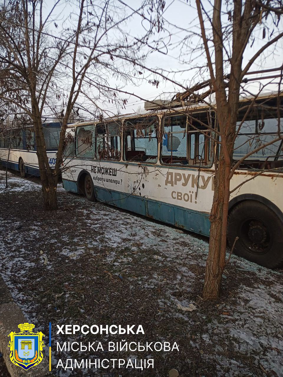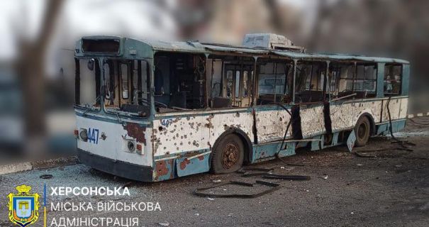 Росіяни обстріляли КП у Херсоні: пошкоджено 12 тролейбусів