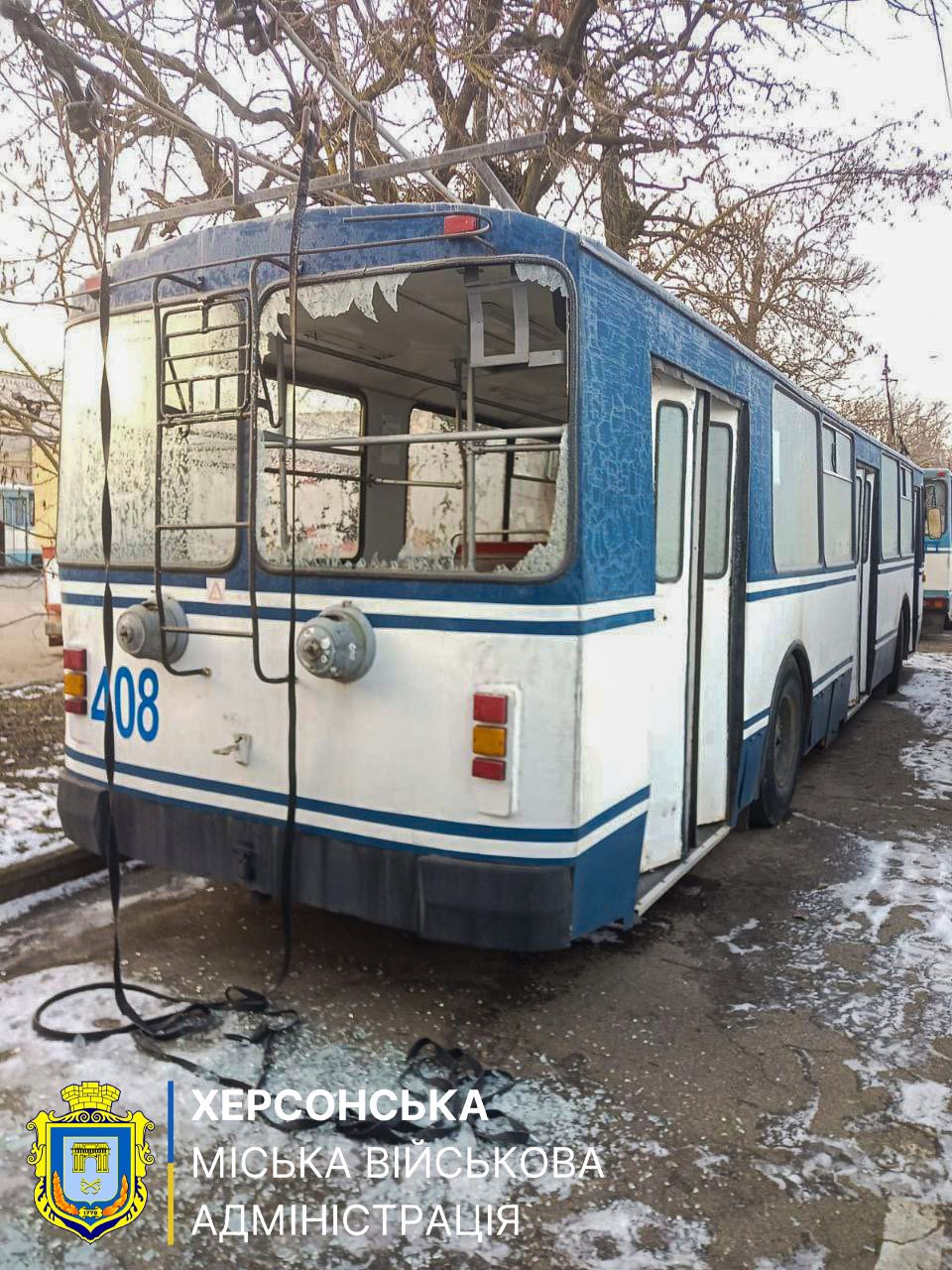 Сьогодні, 11 лютого, росіяни обстріляли у Херсоні комунальне підприємство у Дніпровському районі. Пошкоджено 12 тролейбусів