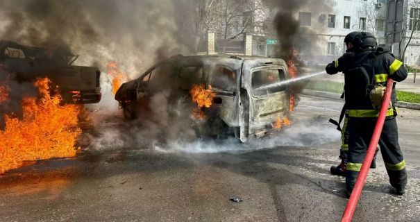 Внаслідок ворожої атаки загорілись два легкові автомобілі. Рятувальники працювали під загрозою повторних атак. Вогонь влалось загасити. На жаль, внаслідок атаки постраждав місцевий житель.