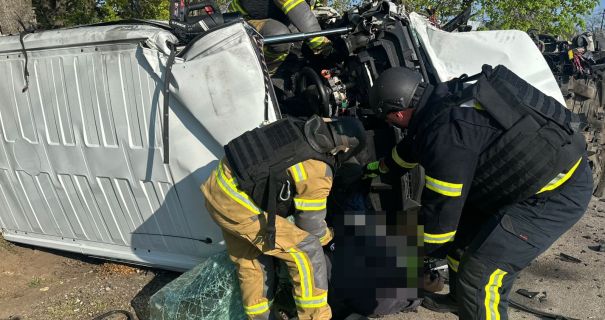 Попри складну безпекову ситуацію, рятувальники деблокували тіло загиблого з понівеченого авто.