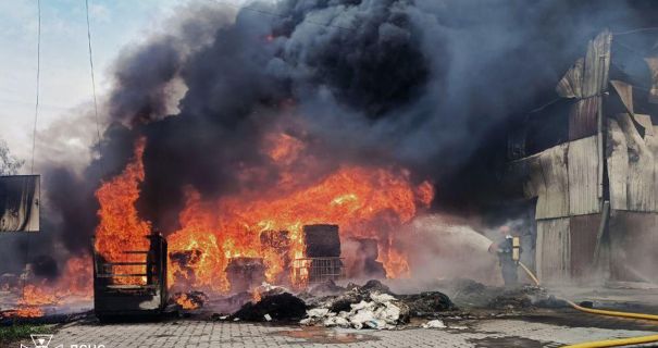 У Летичеві Хмельницького району спалахнула масштабна пожежа на території виробничо-складських приміщень одного з місцевих підприємств