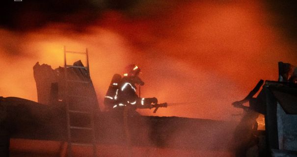 Внаслідок ворожої атаки виникла пожежа на території одного з підприємств в обласному центрі. Рятувальники ліквідували її.