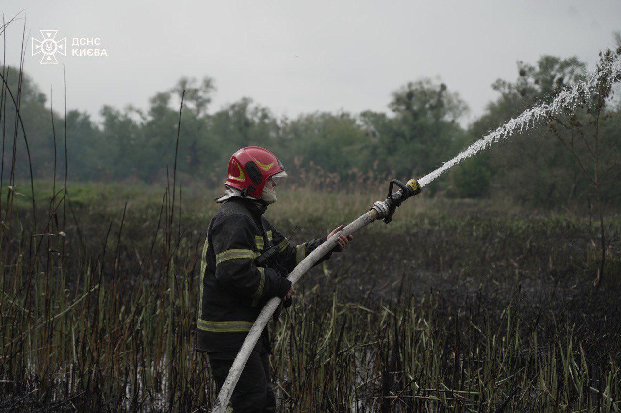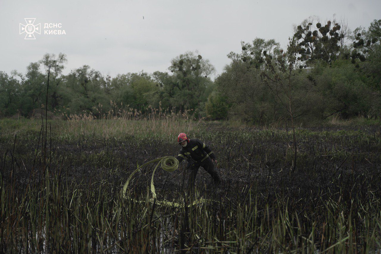 У суботу, 10 травня, на проспекті Валерія Лобановського в Солом'янському районі Києва сталася пожежа в екосистемі — зайнявся очерет на території урочища Совки