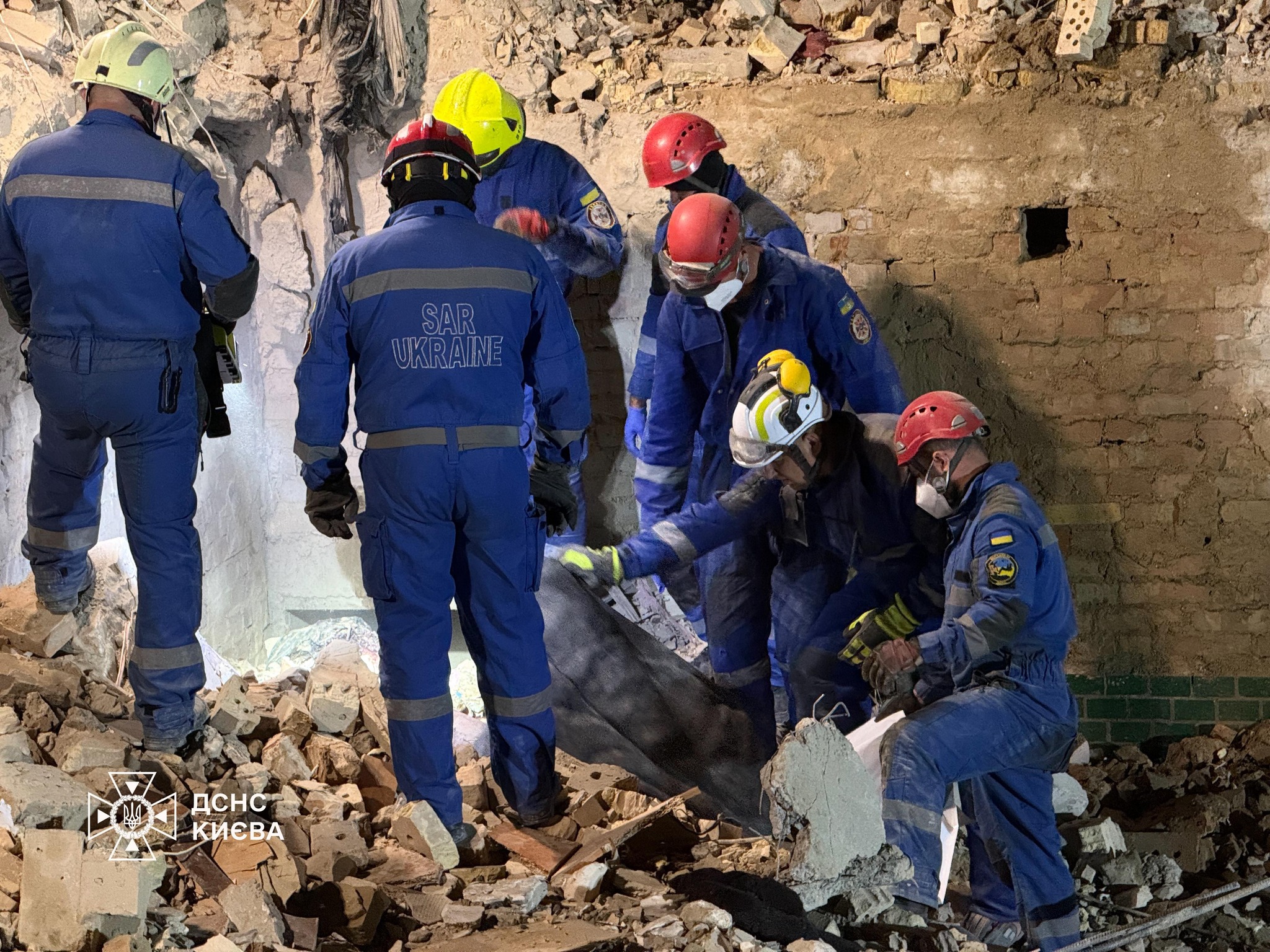 У Солом'янському районі столиці з-під завалів частково зруйнованого дев'ятиповерхового будинку рятувальники деблокували тіла ще трьох загиблих