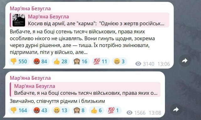 "Косив від армії, але карма": реакція Безуглої на смерть киянина викликала хвилю обурення