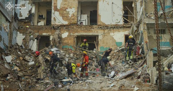 За його словами, внаслідок атаки загинули 9 людей. На місці удару тривають аварійно-відновлювальні роботи: фахівці демонтують аварійні та небезпечні конструкції.