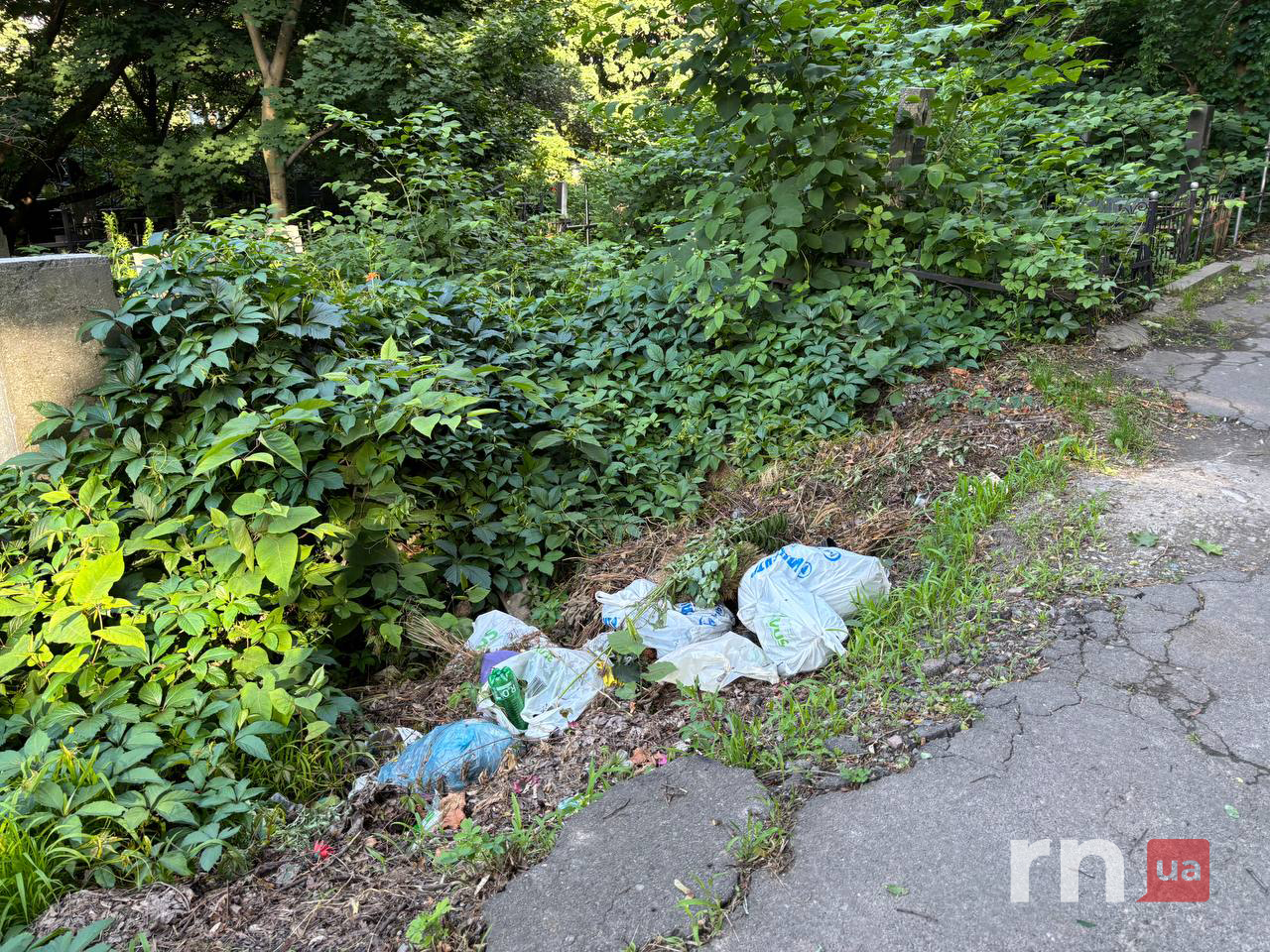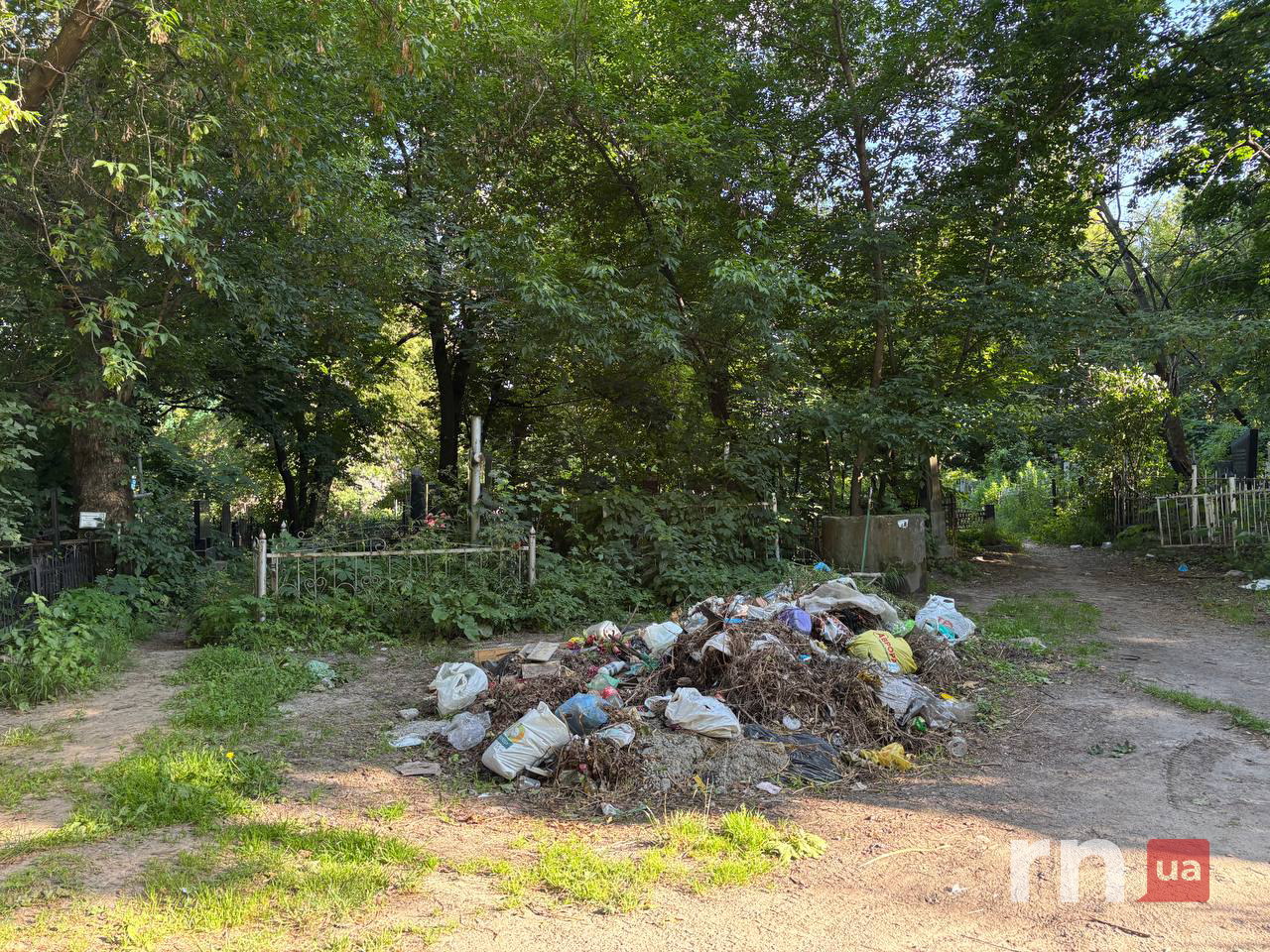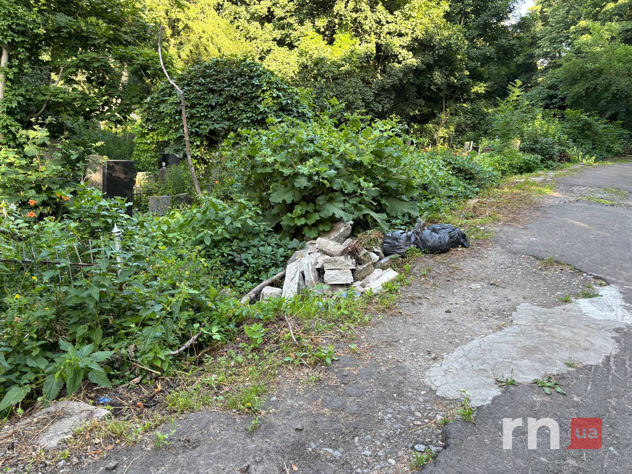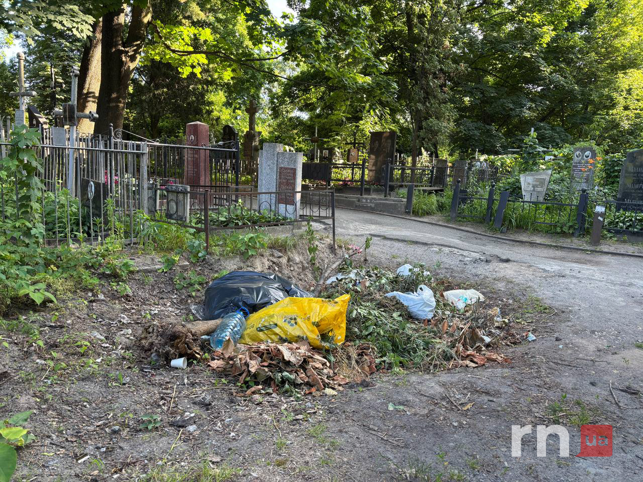 Байковий цвинтар у столиці опинився у занедбаному стані. Сміття протягом тривалого часу не вивозять — воно хаотично скинуте вздовж центральних тротуарів