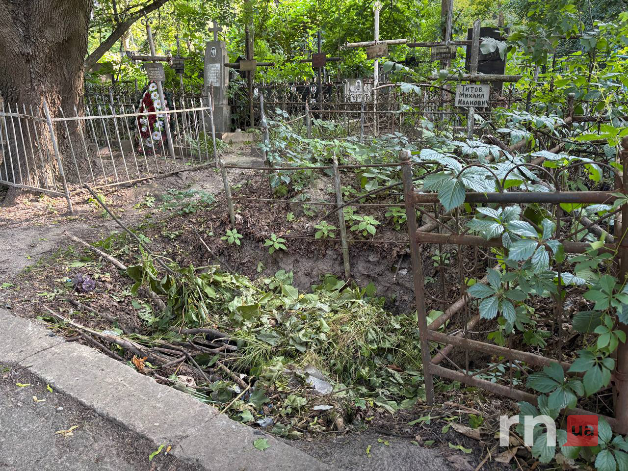 Окрім того, ґрунт із верхніх ярусів сповзає вниз, руйнуючи могили. Деякі надмогильні плити вже обвалилися — їх складають у купу біля захаращених ділянок.