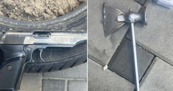 Знаряддя злочину — сокиру та пістолет — вилучено.