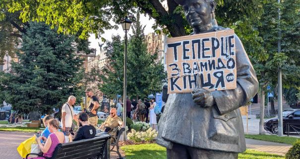 З 20 години кияни знову зібрались на протест біля театру Франка. Містяни мітингують проти скандального законопроєкту про обмеження НАБУ і САП. На кадрах з місця можна помітити транспаранти з написами, які критикують рішення влади.