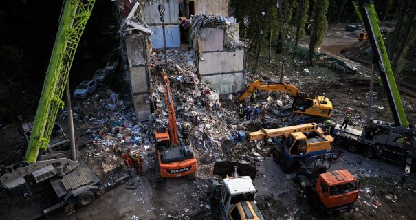 Після нічної російської ракетної атаки на Київ продовжуються пошуково-рятувальні роботи. Найскладніша ситуація — у Святошинському районі столиці, де досі дістають тіла загиблих з-під завалів