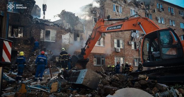 Після масованої російської атаки в ніч на 28 серпня у Києві тривають масштабні рятувальні операції. Підрозділи ДСНС працюють на п'яти локаціях у Дарницькому, Шевченківському та Деснянському районах столиці