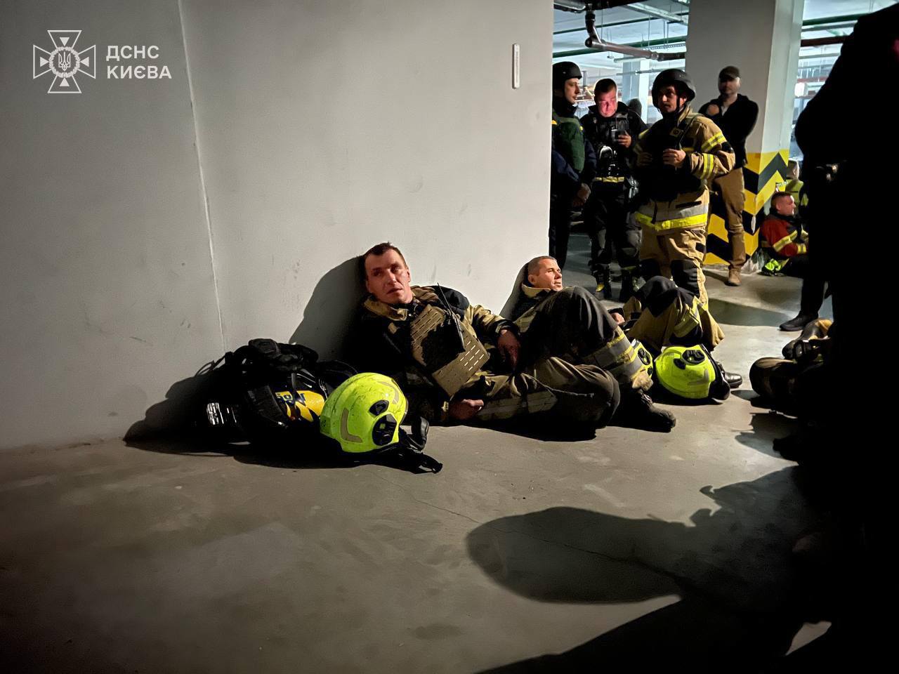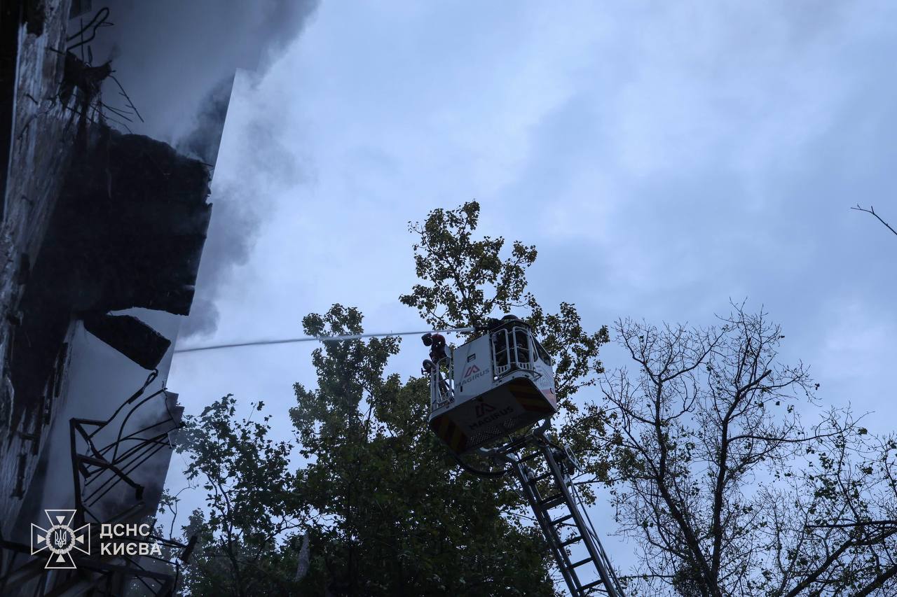 Зазначається, що в Солом'янському районі внаслідок влучання у п'ятиповерховий житловий будинок сталось загоряння на 3 та 4 поверхах із частковим руйнуванням. Під завалами знайдено тіло 12-річної дівчинки. Врятовано трьох осіб, ще одна людина травмована. Пожежу локалізовано, на місці працюють вогнеборці.