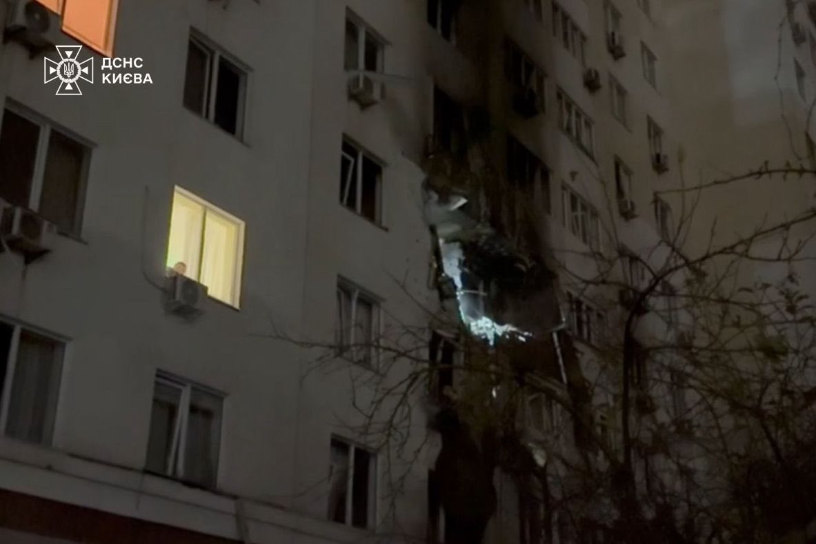 Уламками пошкоджено 14-поверховий житловий будинок. Загоряння квартир на 4-5 поверхах ліквідовано. Медики надали допомогу одній людині.