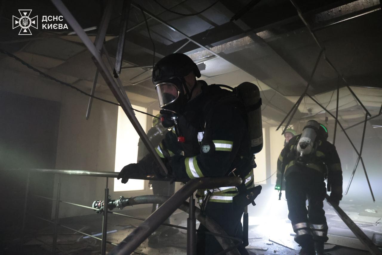 У Києві внаслідок влучання російського дрона горіла офісно-складська будівля
