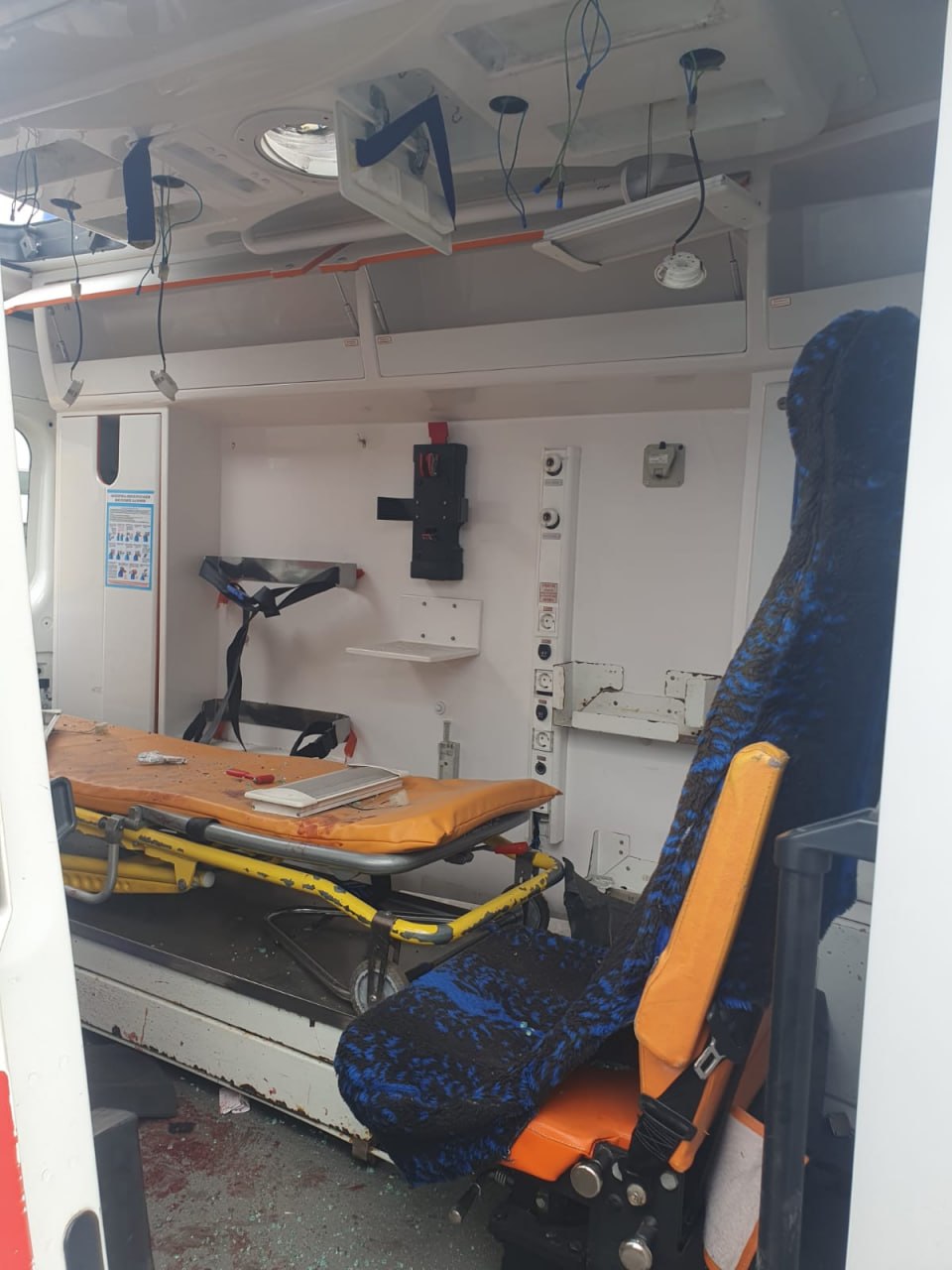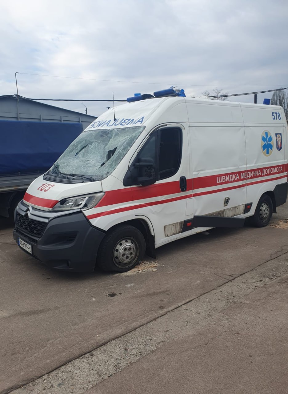 Також значних пошкоджень зазнала карета швидкої допомоги, знищено медичне обладнання.