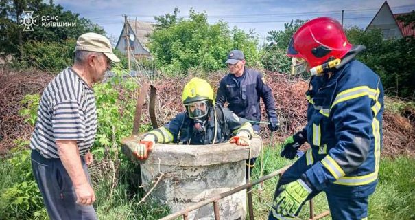 "За допомогою рятувальної мотузки фахівці ДСНС успішно дістали малечу з криниці та передали його господарям", — йдеться в повідомленні.