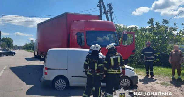 На Київщині зіткнулись вантажівка та Volkswagen. Внаслідок ДТП загинув водій, а також постраждала пасажирка
