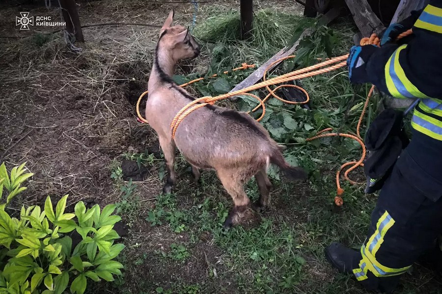 Сьогодні в селищі Завадівка Білоцерківського району маленьке козеня впало в колодязь. Тваринку визволили надзвичайники