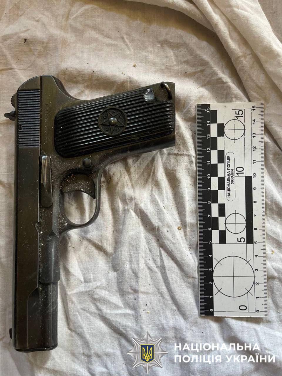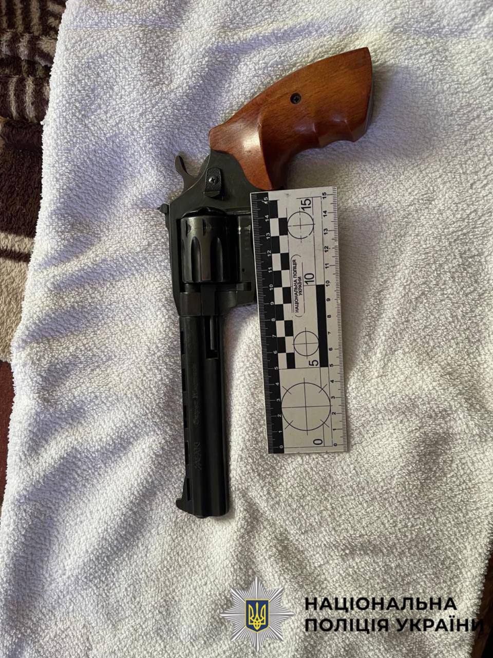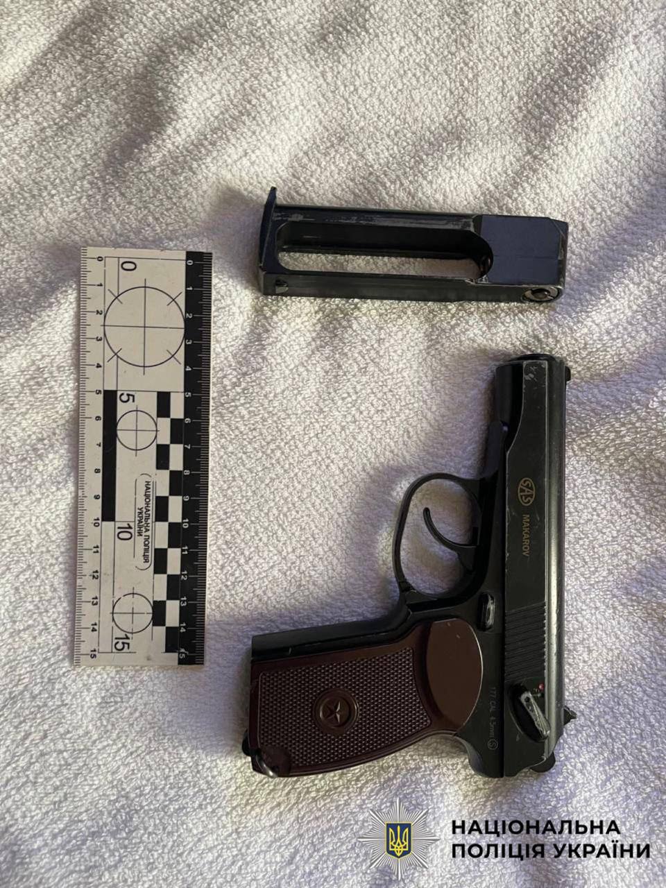 Під час обшуків у будинку фігуранта правоохоронці виявили чотири пістолети, піротехнічну гранату, мисливську рушницю та ніж. Наразі тривають слідчі дії.