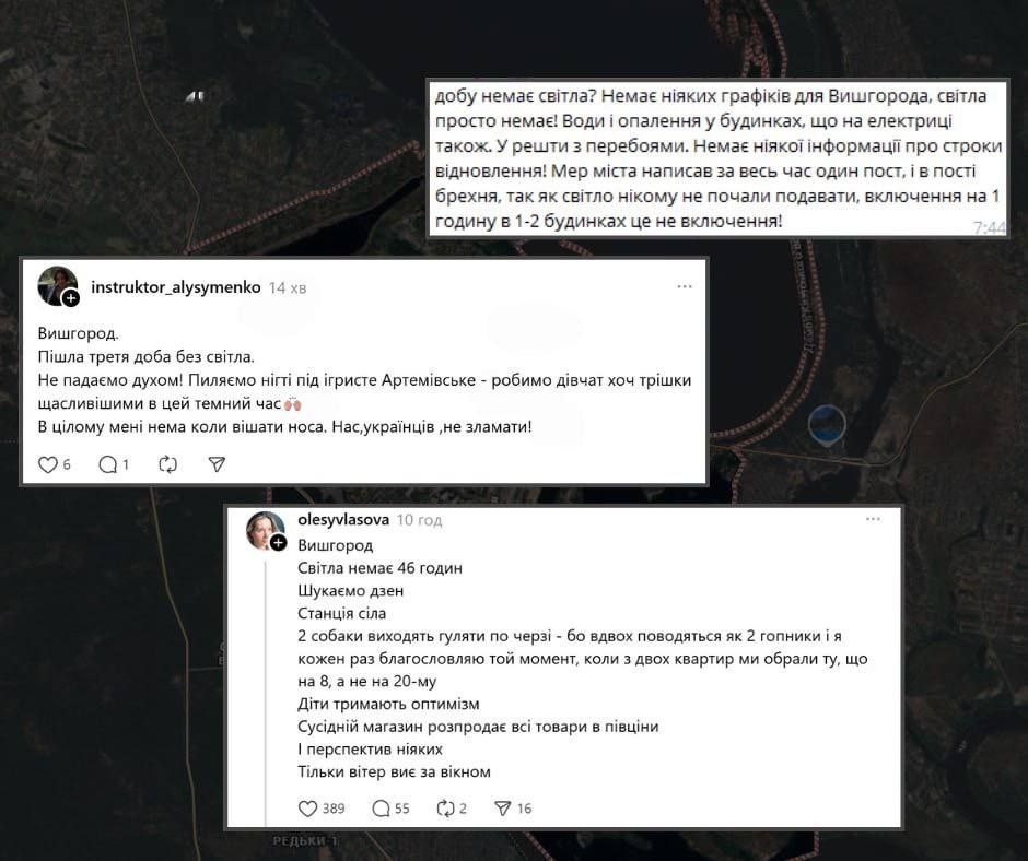 Вишгород на Київщині без світла вже третю добу: немає води та опалення