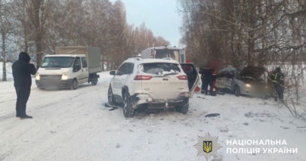 Водій Daewoo Lanos на засніженій дорозі не впорався з керуванням, виїхав на зустрічну смугу, де врізався в авто Jeep Cherokee.