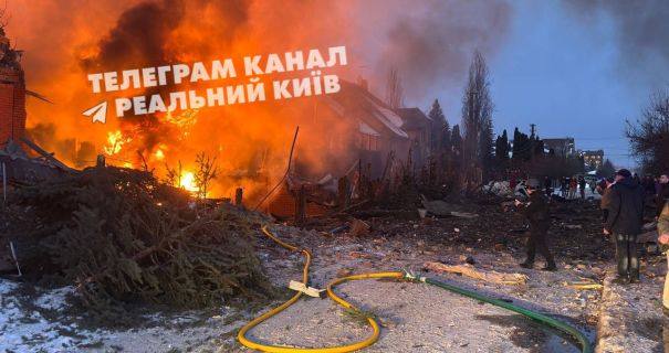 Як пишуть у телеграм-каналах, внаслідок удару зруйновано приватні будинки у селі Софіївська Борщагівка під Києвом.