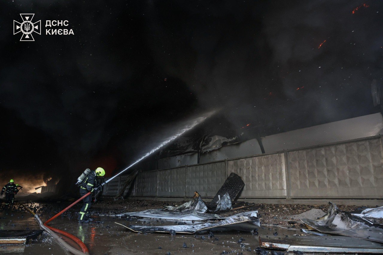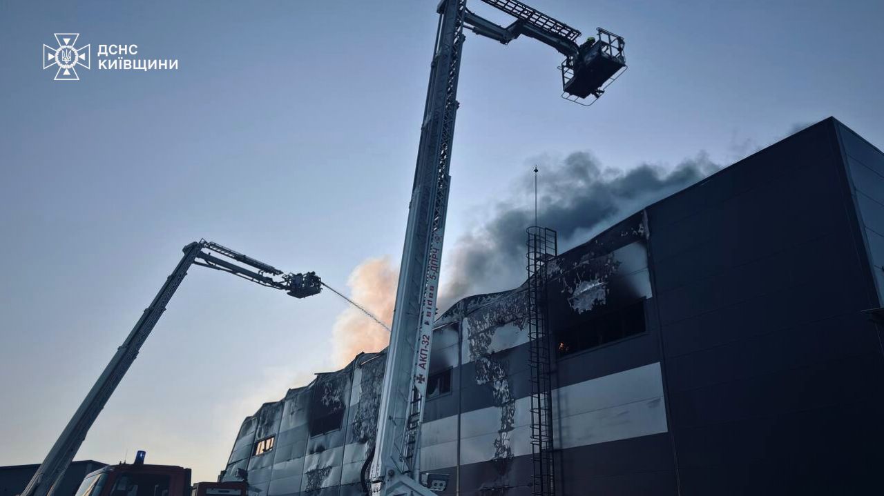 На Київщині ліквідували масштабну пожежу на складах: вогонь охопив 5500 кв. м