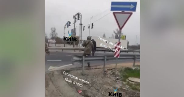 На відео видно, як військовий із пістолетом переслідує чоловіка. Очевидці стверджують, що у переслідуваного був ніж у руках.