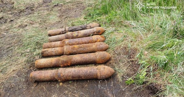 На присадибній ділянці в селі Овсяниківка Катеринівської громади Кіровоградської області виявили небезпечну знахідку — 6 фугасних реактивних мін калібру 158 мм часів Другої світової війни