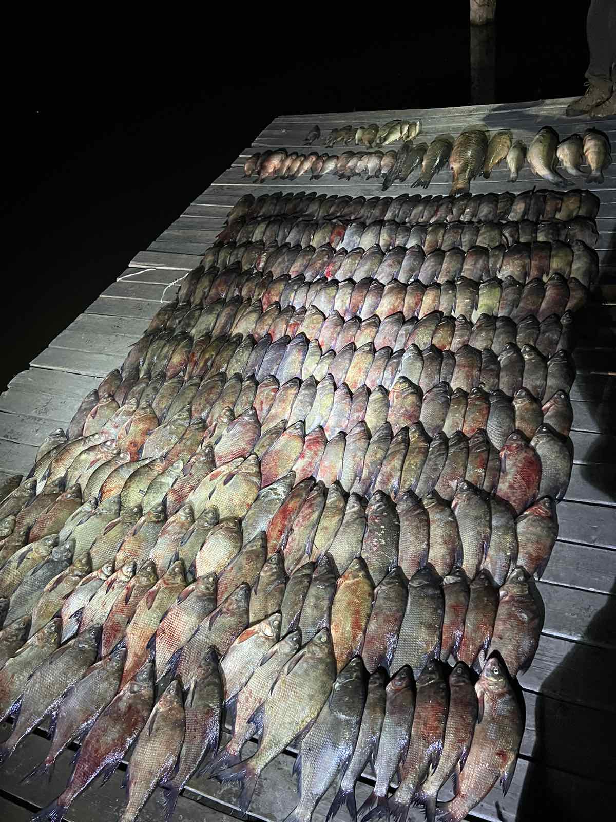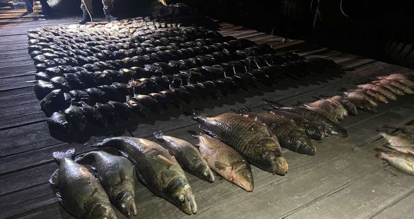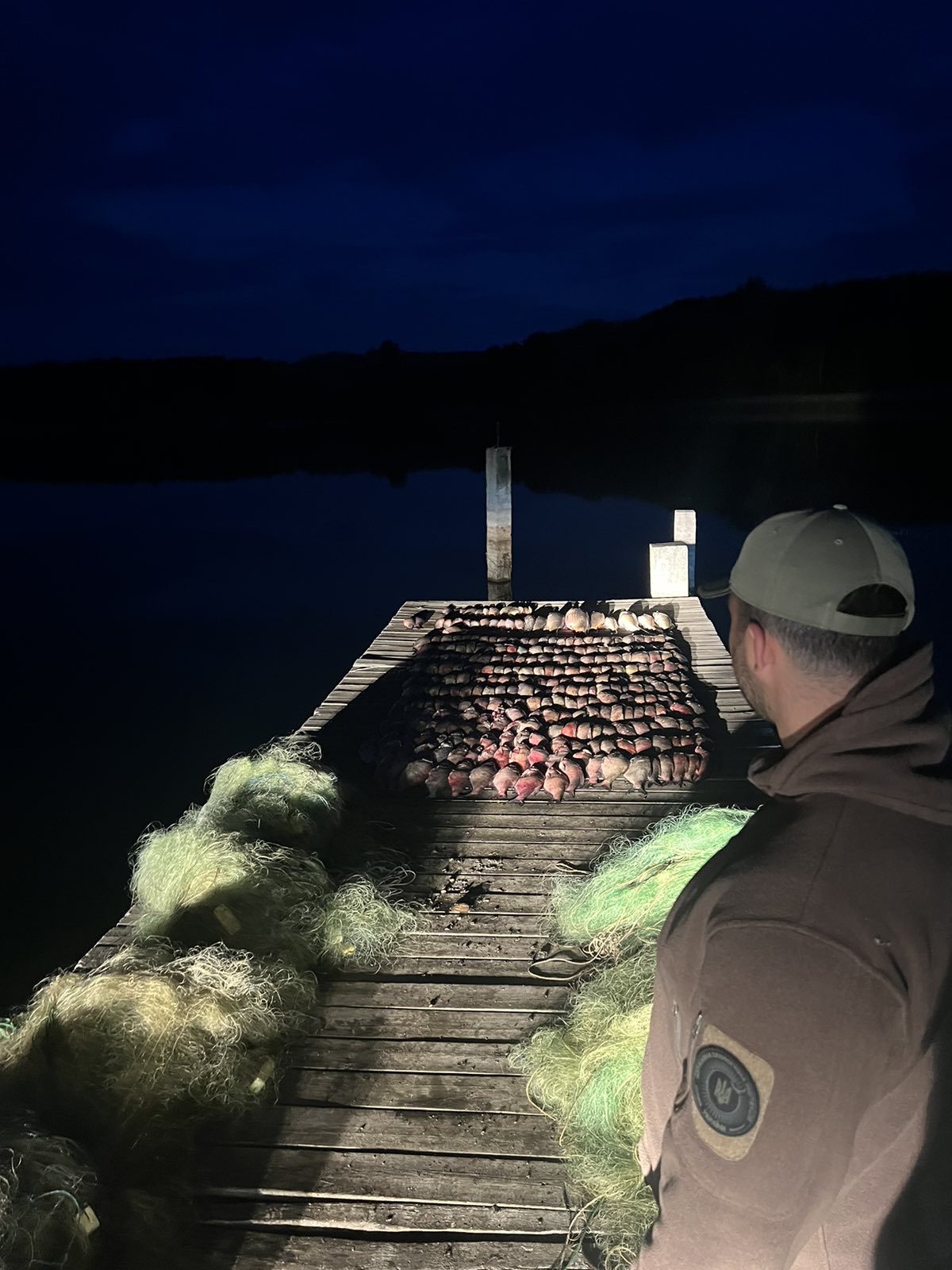 Завдяки злагодженим спільним діям було виявлено громадянина, який здійснював лов риби сітками в кількості 12 штук загально довжиною понад 700 метрів. Чоловік виловив рибу різних видів: лящ – 264 шт., карась – 13 шт., окунь – 11 шт., судак – 4 шт., сазан – 4шт., сом – 1 шт., плоскирка – 1 шт.