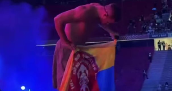 Гурт Imagine Dragons продовжує підтримувати українців. На цей раз фронтмен Ден Рейнольдс підняв на сцені прапор із символом української військової бригади