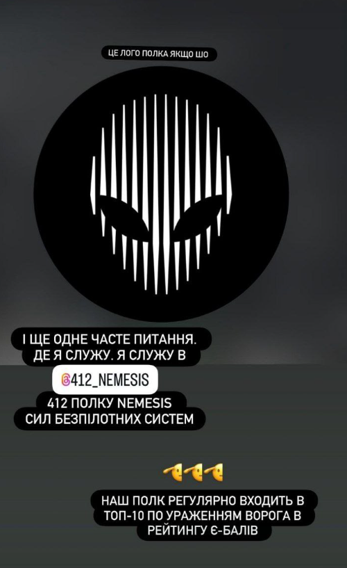Гуморист розповів, що він служить у 412 полку Nemesis Сил безпілотних систем. Він також додав, що можливо в найближчому майбутньому він зможе взяти відпустку і навіть поїхати за кордон, зробити новий контент.
