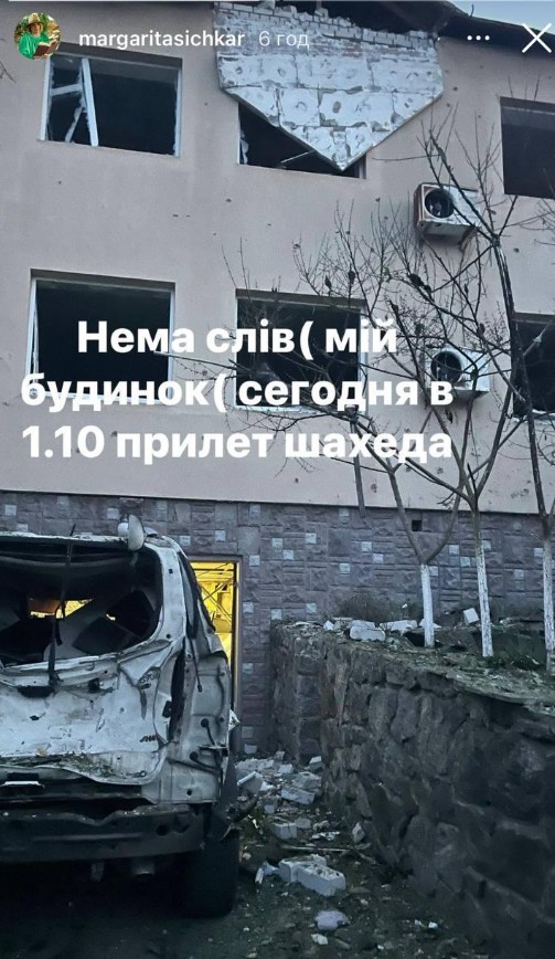 Маргарита Січкар розповіла, що її будинок та автомобіль пошкоджені. Це сталось внаслідок удару російського дрона