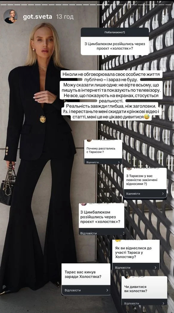 "Ніколи не обговорювала своє особисте життя публічно – і зараз не буду. Не все, що показують на екранах, стосується реальності. Реальність завжди глибша, ніж заголовки", – зазначила вона.