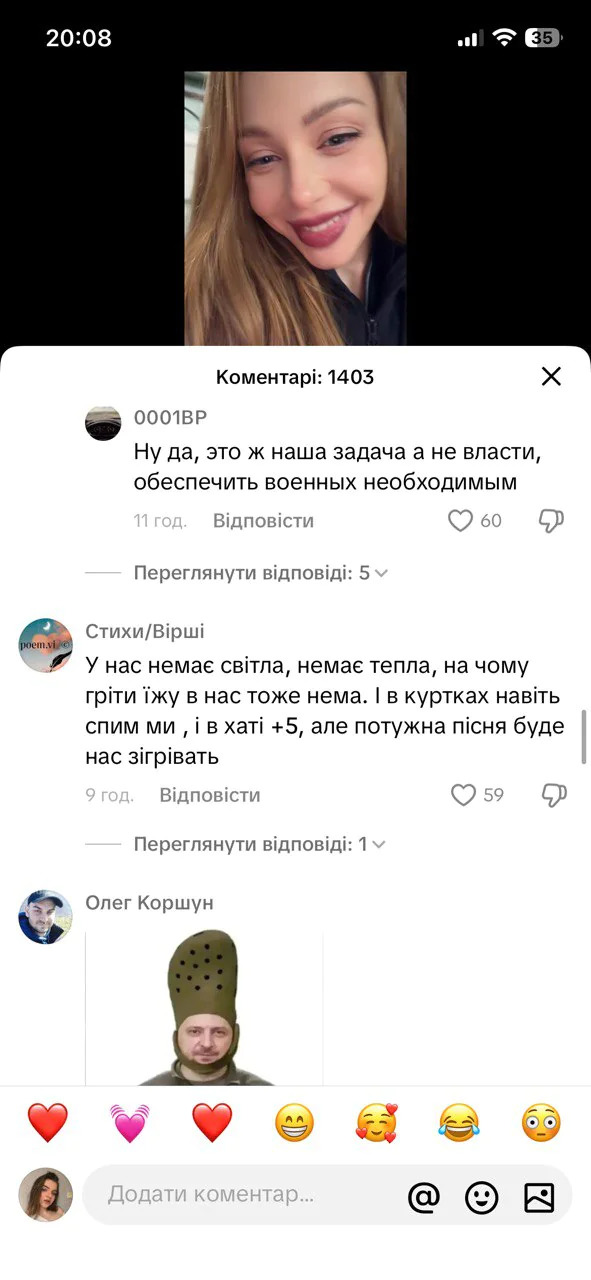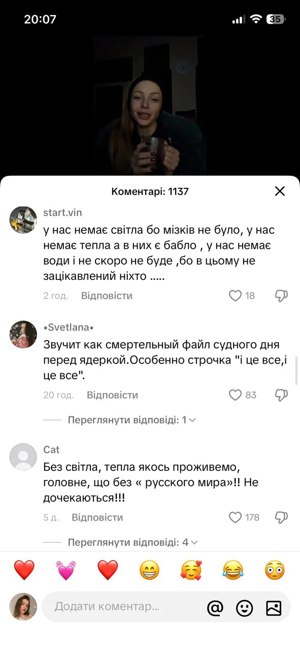 Українці також активно реагують на пісню, створюючи відео у власних домівках – без світла, тепла та води, використовуючи рядки треку для іронічних підписів.