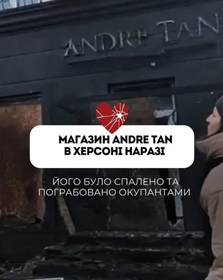 На початку повномасштабної війни магазин Андре Тана в Херсоні було розграбовано. Тепер магазин уже повністю знищено