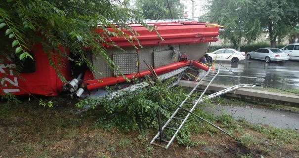 Слідчі встановили, що автомобіль ДСНС "МАЗ", під керуванням 42-річного водія, рухався на виклик вулицею Новікова у напрямку вул. Курчатова, але інший автомобіль, що рухався у попутному напрямку, зробив маневр – поворот, через що водій "МАЗ" здійснив екстрене гальмування, виїхав з дорожнього полотна та перекинувся.