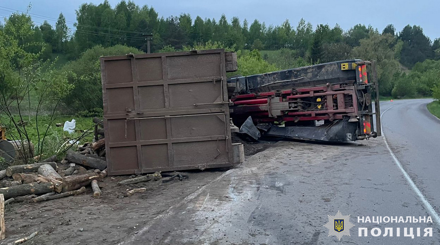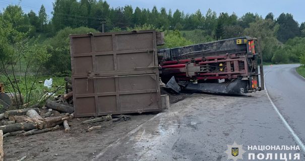 На Львівщині перекинулася вантажівка з дровами: постраждала людина