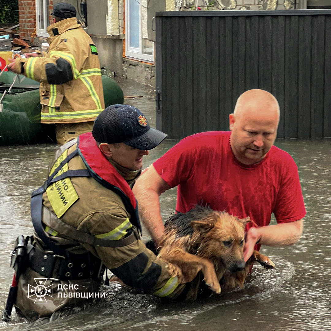 У селі Скнилів рятувальники евакуювали чотирьох людей, зокрема двох дітей, а також врятували двох собак.