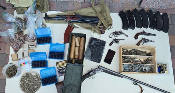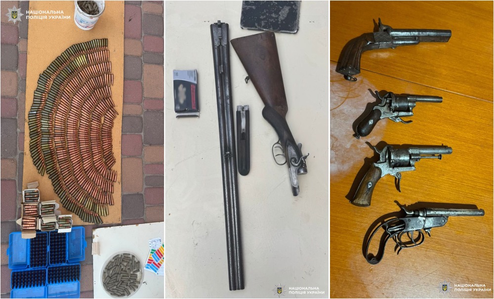 Під час обшуку вдома у 51-річного чоловіка вилучили чотири револьвери, автомат Калашникова, мисливську рушницю, чотири гранати, вибухові пакети, понад тисячу набоїв різного калібру, магазини та інші речові докази. Усе відправили на експертизу.
